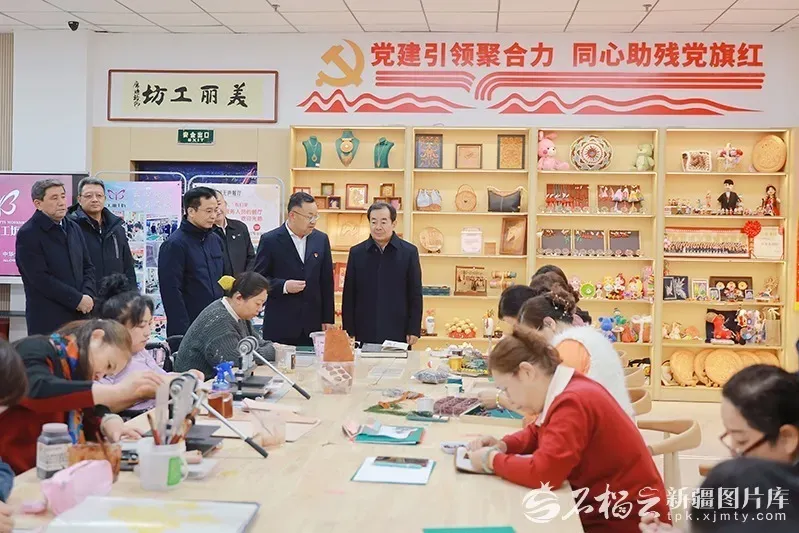 12月30日,自治区党委书记陈小江在自治区残联,听取残疾人就业创业情况介绍,察看残疾人制作手工艺品、非遗产品等。石榴云/新疆日报记者 崔志坚摄