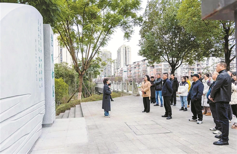重庆市南川区纪委监委通过组织党员干部参观廉政教育基地、举办家风书画展等形式,引导其筑牢拒腐防变思想防线。图为近日,某单位党员干部在参观“澄水如鉴”清水润廉家风步道。罗建 摄