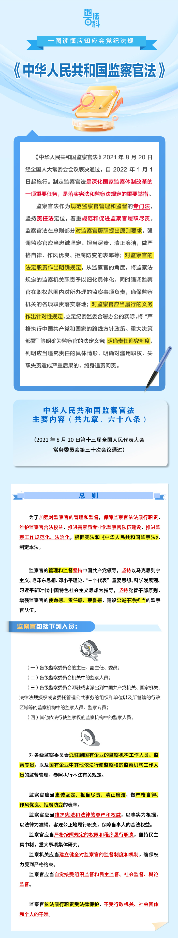 纪法百科•一图读懂应知应会党纪法规 《中华人民共和国监察官法》