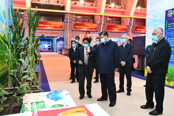 下午3时45分许,习近平来到北京展览馆,走进展厅参观展览。展览以“创新驱动发展 迈向科技强国”为主题,共分总序、百年回望、基础研究、高新技术、重大专项、农业科技、社会发展等12个展区。通过1300多件实物、200多件模型等,集中展示“十三五”以来,全党全国贯彻落实以习近平同志为核心的党中央关于科技创新的一系列重大决策部署取得的重大科技成果。