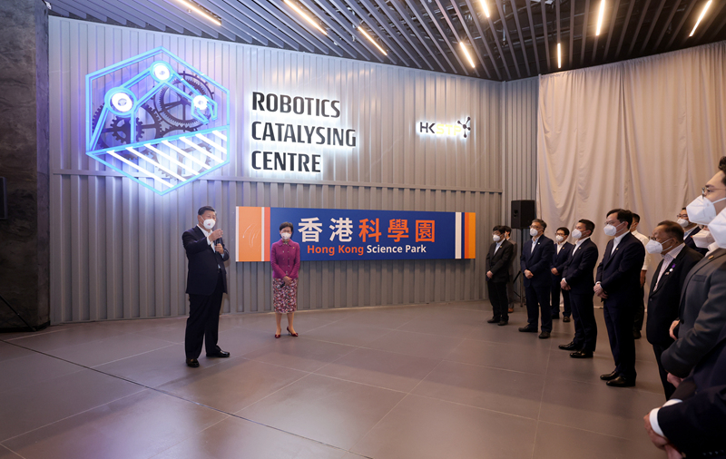 香港科学园是香港最大的科技研发及企业孵化基地,目前拥有1100多家企业和1.7万余名创科从业者,吸引了众多国内外知名科研机构和高校进驻设立实验室。在科学园展厅,习近平听取香港创新科技发展、深港创新科技发展互动、香港科学园发展等情况介绍,观看香港代表性创科企业展示。习近平指出,近年来,在中央支持下,香港发挥自身优势,在基础研究、人才培养、创科产业发展等方面都取得了令人瞩目的成绩。特别行政区政府要把握时代发展大势,把支持创新科技发展放在更加突出的位置,进一步发挥好科技创新的支撑和引领作用。
